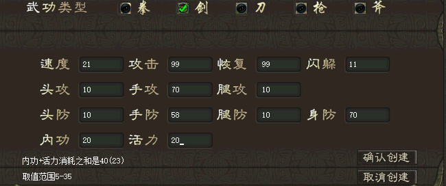 还有要强调的就是:总共这七项,只有238点可分配,如何取舍就成为各门武千差万别之根本所在,